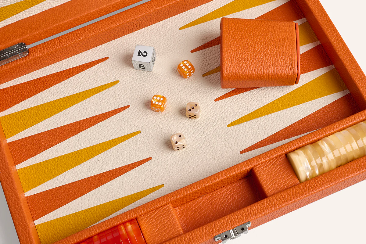 À travers le Carnet de Voyages « Destination » et son jeu iconique, le Backgammon, la Maison rend hommage au couple fondateur. Chaque lieu, chaque voyage, chaque attachement est ici célébré comme une destination de prédilection, symbole de l’audace, du raffinement et de passion. La Collection est composée de 6 Backgammons en taille Medium, confectionnés en marqueterie de cuirs grainés, aux couleurs des Îles et des Villes, chères à la Maison Hector Saxe.