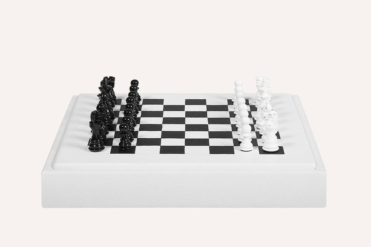 Ce Coffret d'Échecs gainé de cuir met en valeur un jeu emblématique à travers des matières nobles et des finitions exigeantes. Une création Hector Saxe, pensée pour les amateurs de stratégie et de beaux objets.