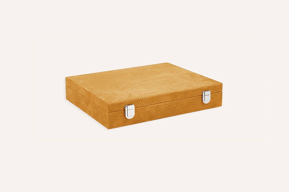 Conçu comme un véritable objet d’art de vivre, ce Coffret Poker en cuir de vachette à impression alligator élève chaque partie avec une signature visuelle affirmée. Héritier du savoir-faire de la Maison Hector Saxe, il séduit les passionnés de poker haut de gamme en quête d’élégance et de caractère.