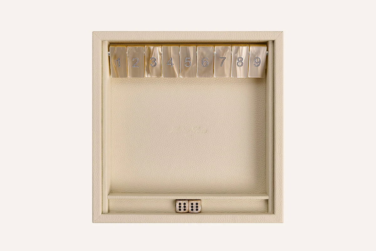 Jeu de chiffres au rythme rapide, le Shut the Box invite à la prise de décision immédiate. Entre hasard et stratégie, il se prête aussi bien aux parties improvisées qu’aux moments de partage, dans une interprétation soignée pensée pour durer et se transmettre.